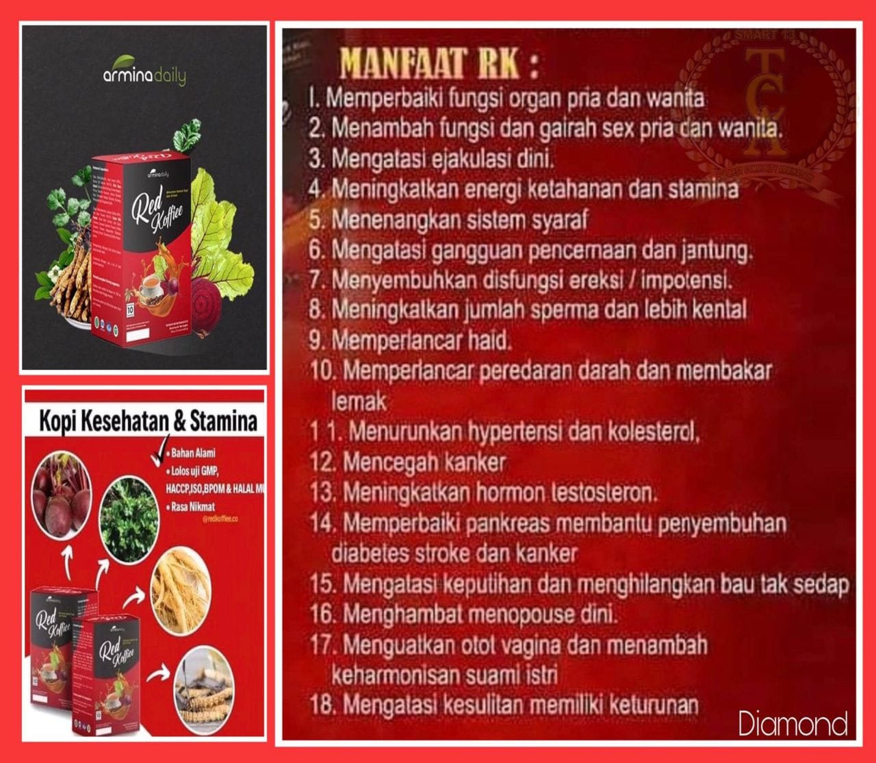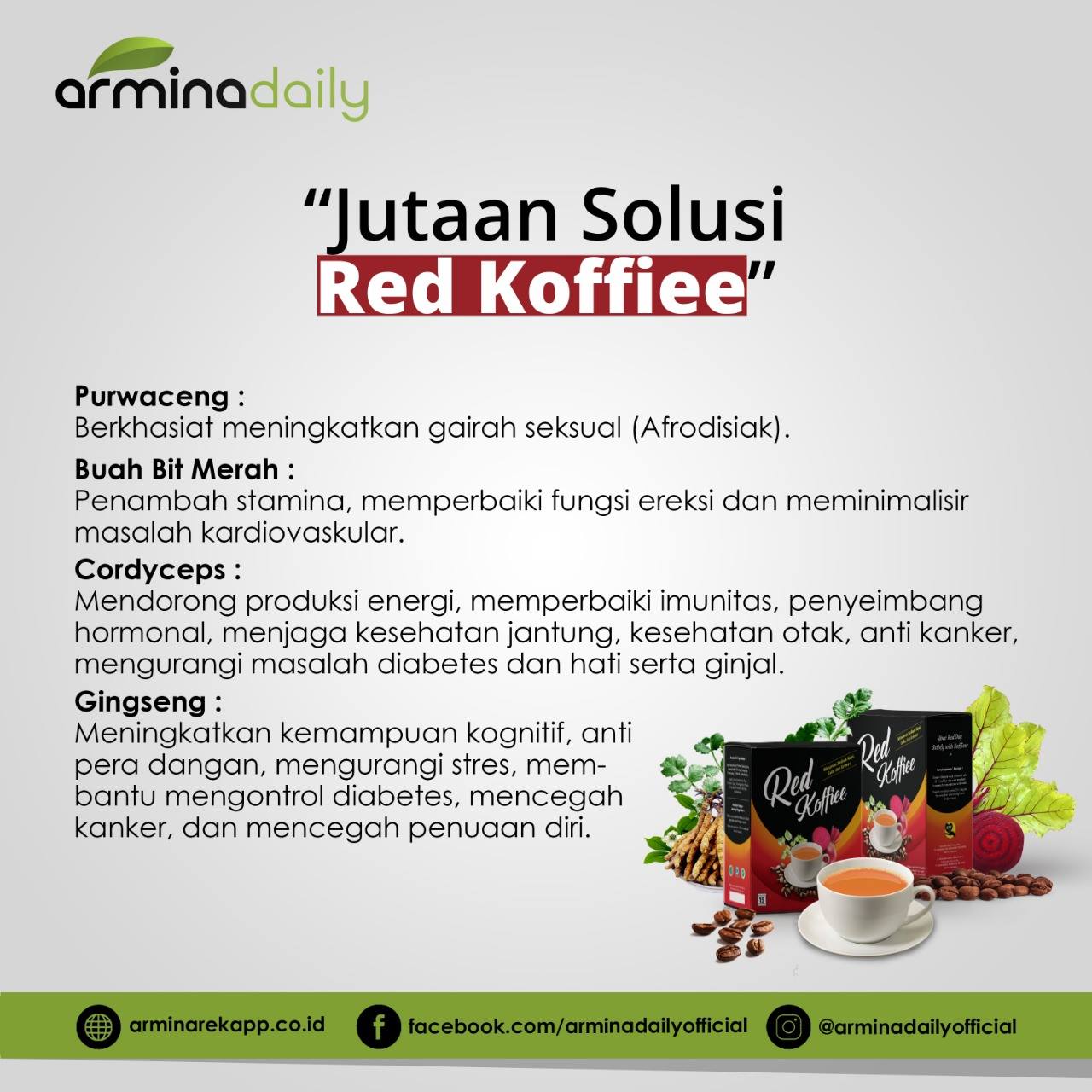 Red Koffiee 1 Pack (Kopi) Rp.420.000,- | Ashiha Pro 1 Pack (Propolis) Rp.320.000,- | Ashiha Honey 10 in 1 (Madu) Rp.350.000,- | Harga sesuai mutu produk.